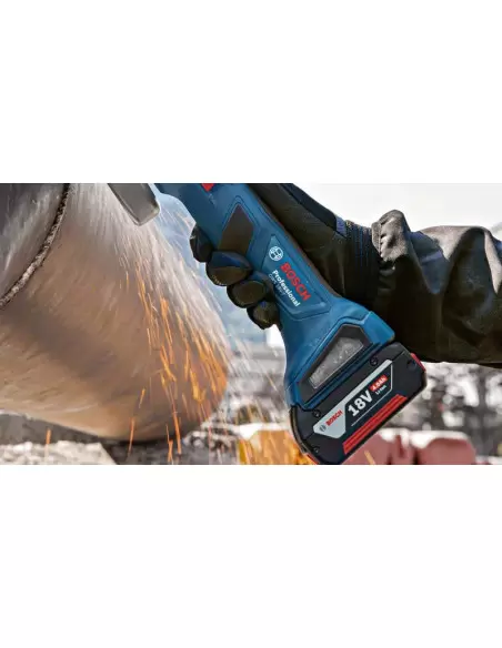 • Elle est compatible avec toutes les batteries et tous les chargeurs 18 V de Bosch Professional ainsi qu’avec le dispositif d’aspiration GDE 125 EA-T Bosch.