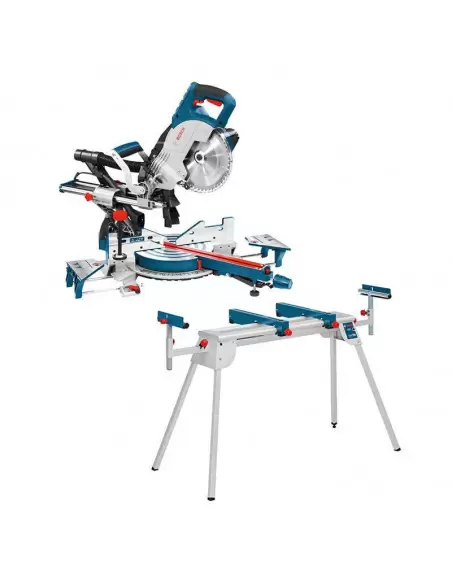 Comportant une poignée pour un transport facile, la scie à onglets de 17.3 kg adopte un démarrage progressif afin de préserver les composants électroniques de l’appareil et les fusibles électriques du lieu de travail. La scie Bosch GCM 8 SJ 1600W est fournie avec des rallonges latérales et une table de travail BOSCH GTA 2600 Professional.
