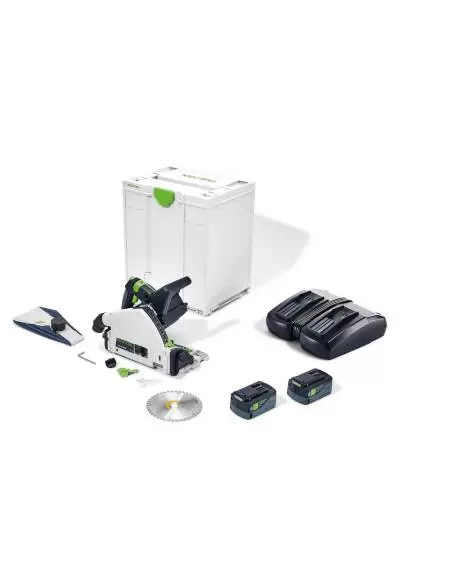 • Idéal pour le système de double batterie 18 V de la TSC 55 K. Avec ses deux emplacements de branchement, le chargeur rapide DUO recharge les deux batteries en même temps.